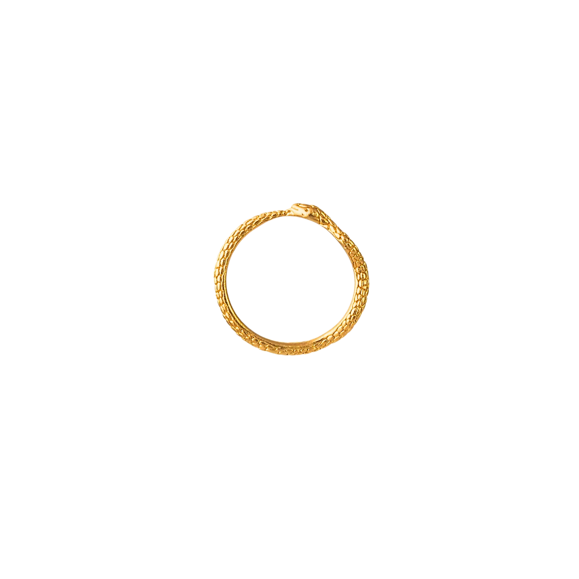 A sleek ouroboros design, where the serpent gracefully bites its own tail, symbolizing infinity, rebirth, and the unbroken cycle of life.